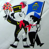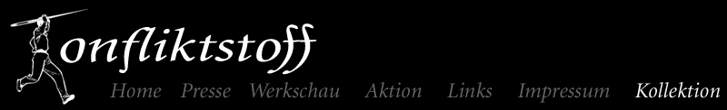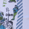Next to the work as artist KONFLIKTSTOFF collects and preserves East-German propaganda scarfes. KONFLIKTSTOFF engagiert sich nicht nur für aktuelle Textilkunst, sondern bewahrt textile Ausdrucksformen vergangener Zeiten. Auch hier ist das Zusammenspiel von "Stoff" und Propaganda von besonderem Interesse. Tücher mit Propagandamotiven haben eine lange Tradition. Sie sind einfach und billig in der Herstellung, können deshalb massenhaft verteilt werden und erzielen durch das öffentliche Tragen einen großen Effekt. Diese Sammlung ist den Propagandatüchern der DDR gewidmet. Solche Tücher fanden sich in großer Zahl in fast allen öffentlichen Lebensbereichen. Von Bekenntnissen zu Staat und Partei, Erinnerungen an den Wehrdienst, dem Feiern politischer Veranstaltungen oder der Werbung für Städte und Regionen gab es unzählige Motive, um die Bürger der DDR mit den Zielen des sozialistischen Systems propagandistisch vertraut zu machen.