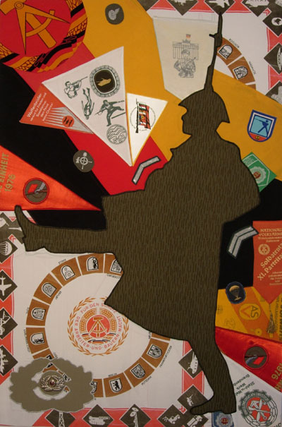 Triptychon NVA - Teil 2 "Ehre", 120 x 80 cm, Textilapplikation auf Keilrahmen, 2007, verkauft