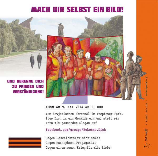 in Deutschland, der Ukraine, Rußland und anderswo. In das von Archi Galentz gemalte Panoramagemälde (2,5 x 3,6m) kann sich der interessierte Betrachter selbst in die Leerstellen einfügen und per Camera ein Bild machen. |