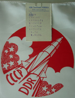 "SOJUS-31 / CCCP / DDR", mit originalem Herstelleretikett des VEB Textilwerk WEDRU Bärenstein